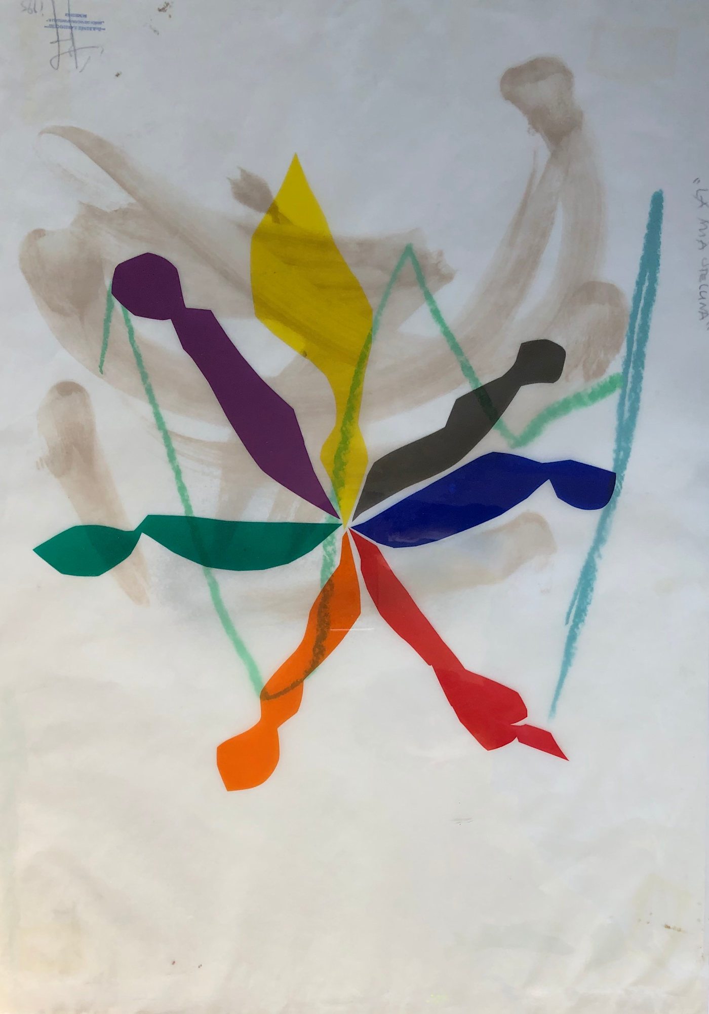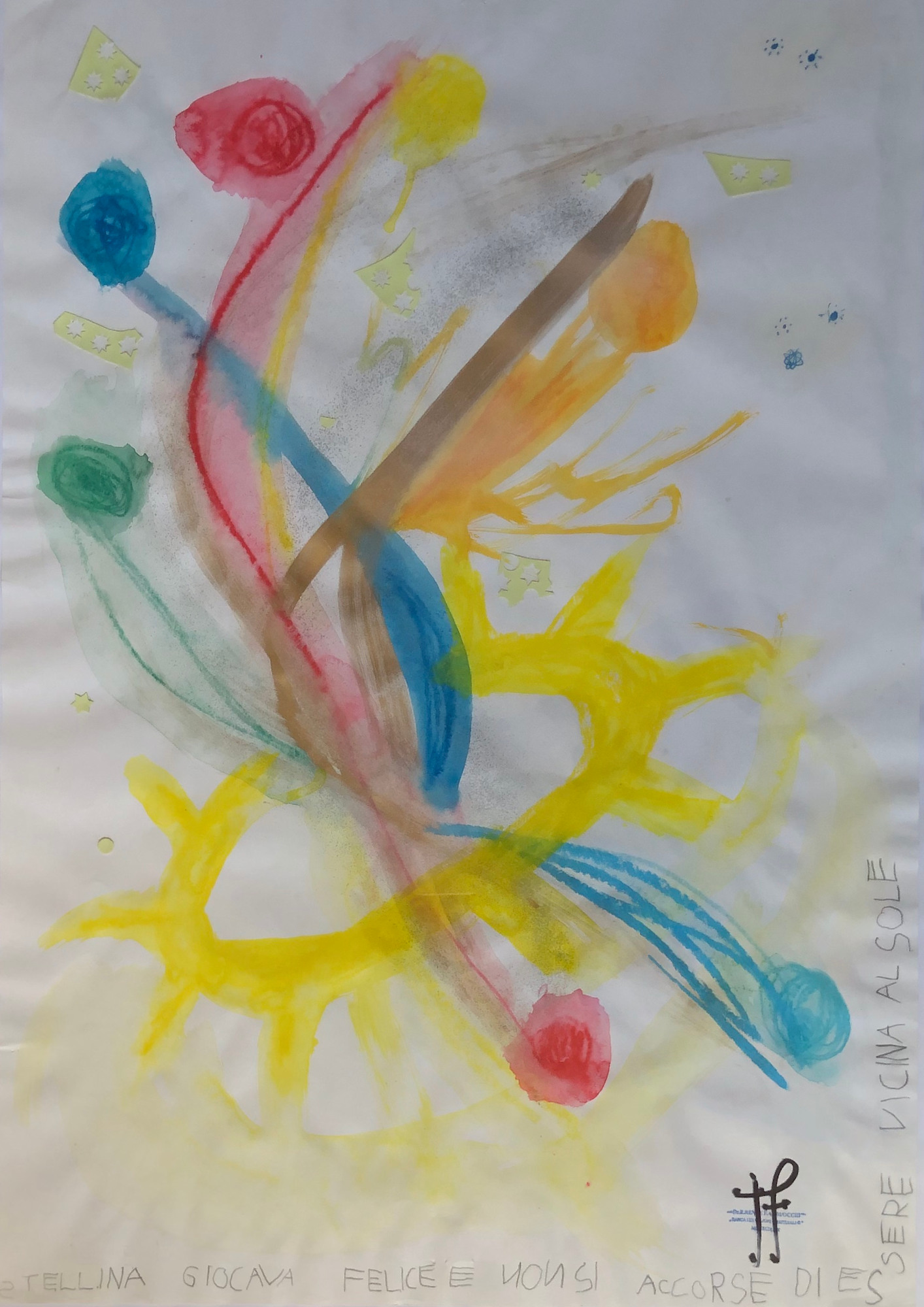 STELLINA is a research project dedicated to CHILDREN, my cordial attempt to bring them closer to Nature, Spirit, the Genesis of the Soul. Created for my son David to reveal to him my deep intuitive secrets, it was a Manifesto of Light to combat the widespread taboo on the Birth of the Soul. In fact, the Infant World was still bound to images such as the Cabbage or the Stork. With the help of Kandinski's "The Spiritual in Art" and Paul Klee's "Pedagogical Notebooks," I was able to compose after years and years of Observations a new pedagogical orbit between Life and Genesis. The PerSon has a sound and the game consists of approaching the Children through metallophones to the 7 musical notes (planets) and to stimulate them in associating 7 colors with them. The result is a very valuable color theory created by the children themselves (Synesthesia):