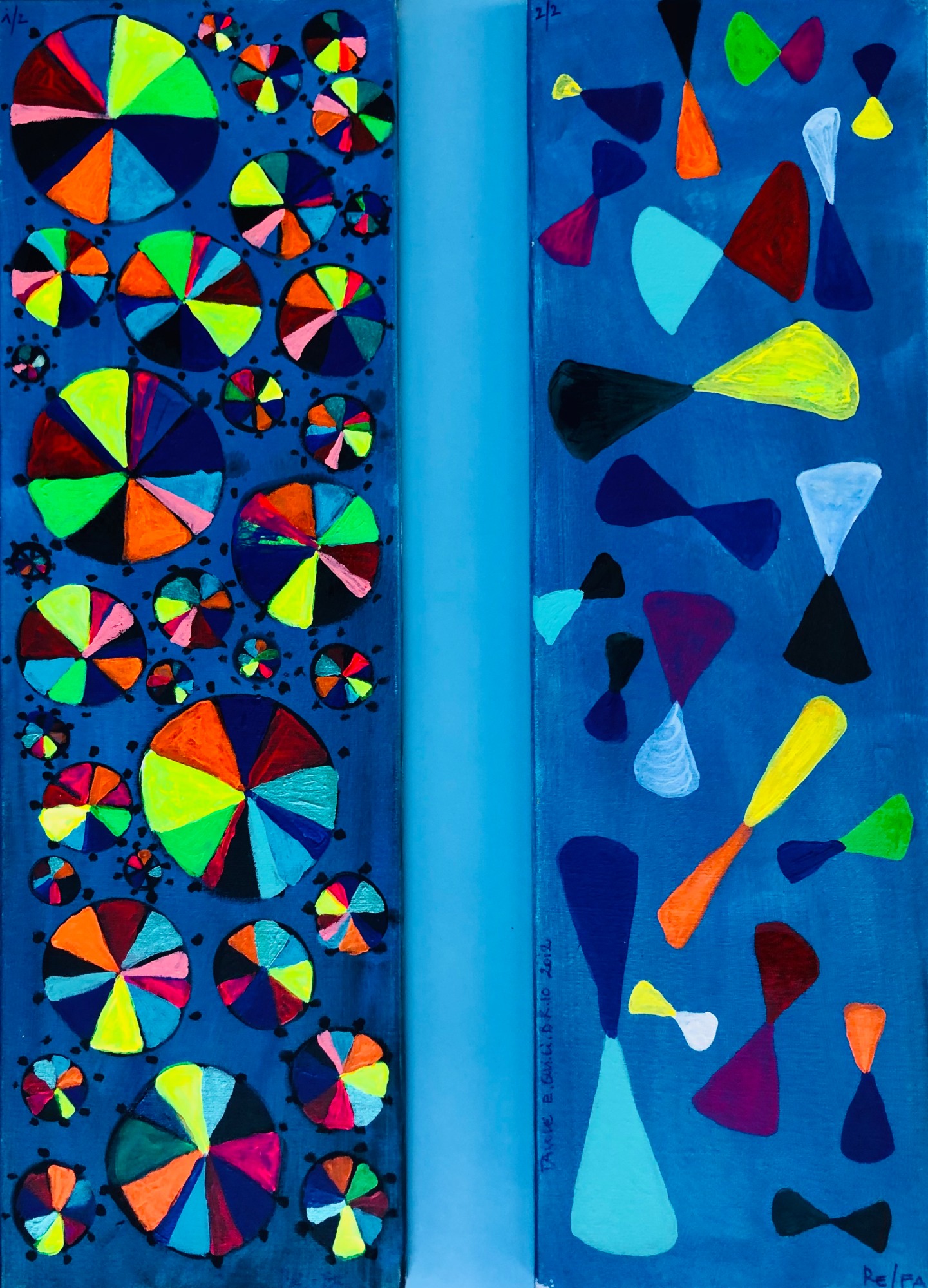 These Studies on the Equilibrium, starting with the complete 7 Colors Wheel of STELLINA, are divided into balancing hourglasses. Paying homage to the Dimension of Divine Bliss that create a Symphony with the Different Colors.