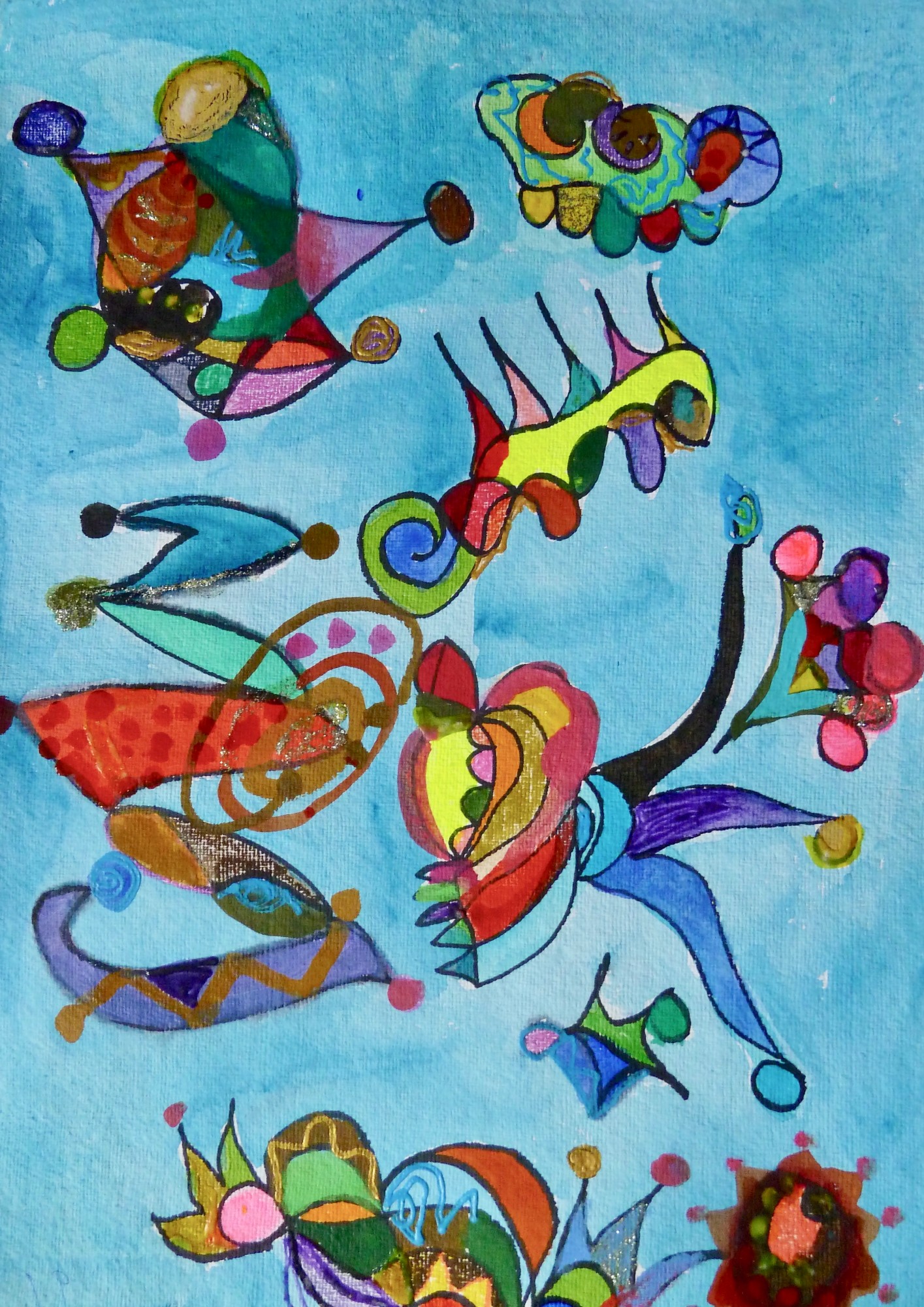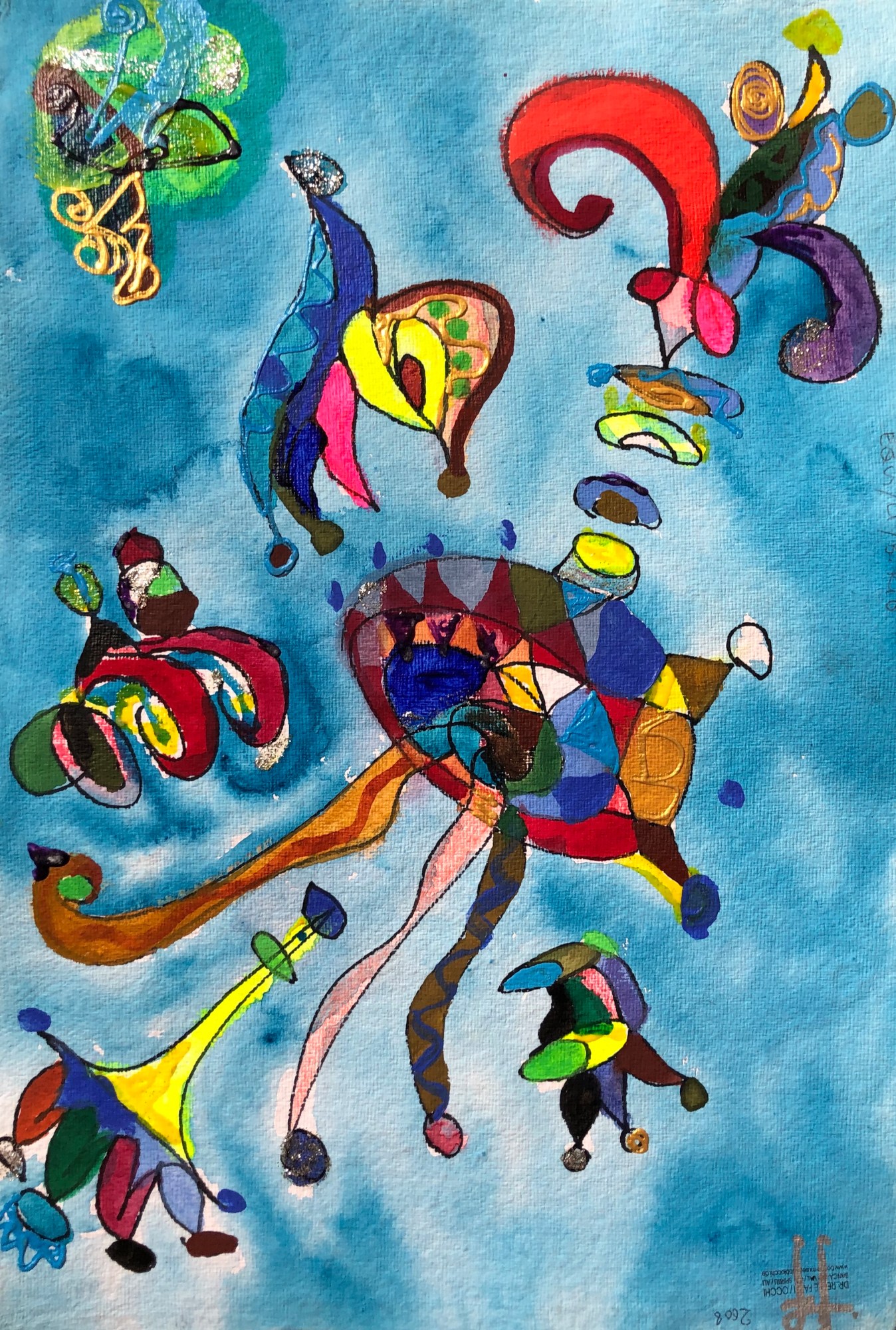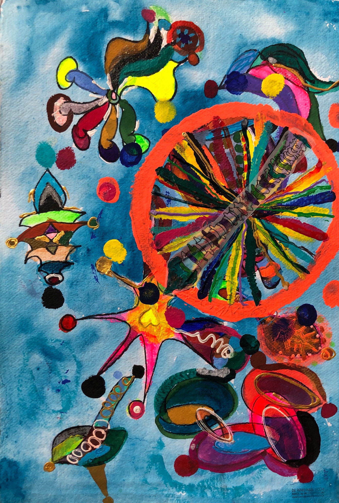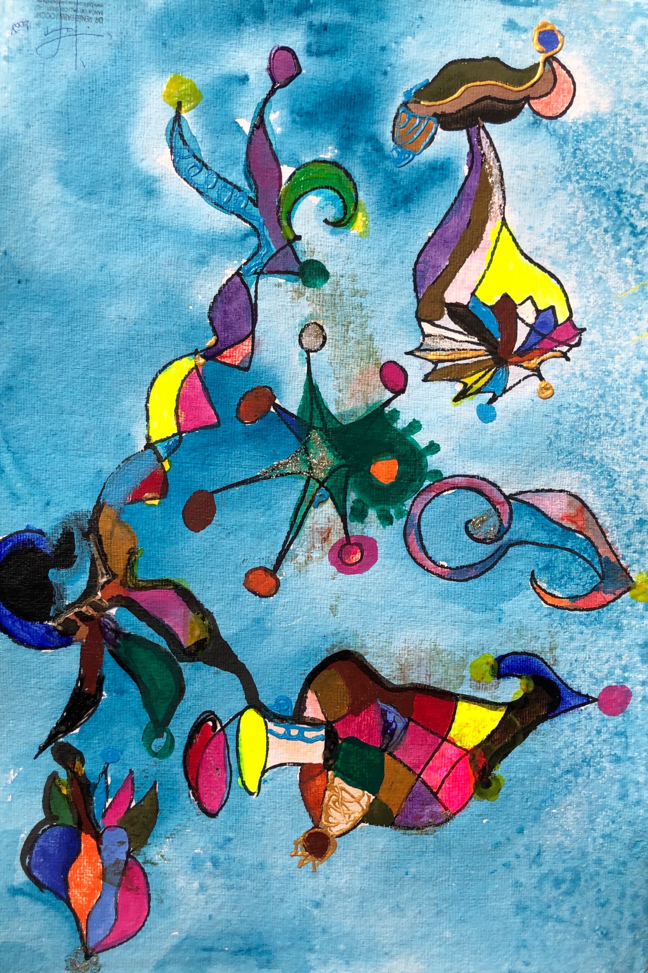 A work on paper representing a dreamlike dimension of yellow light that creates magical forms, miracles, surprising harmonies of divine bliss.