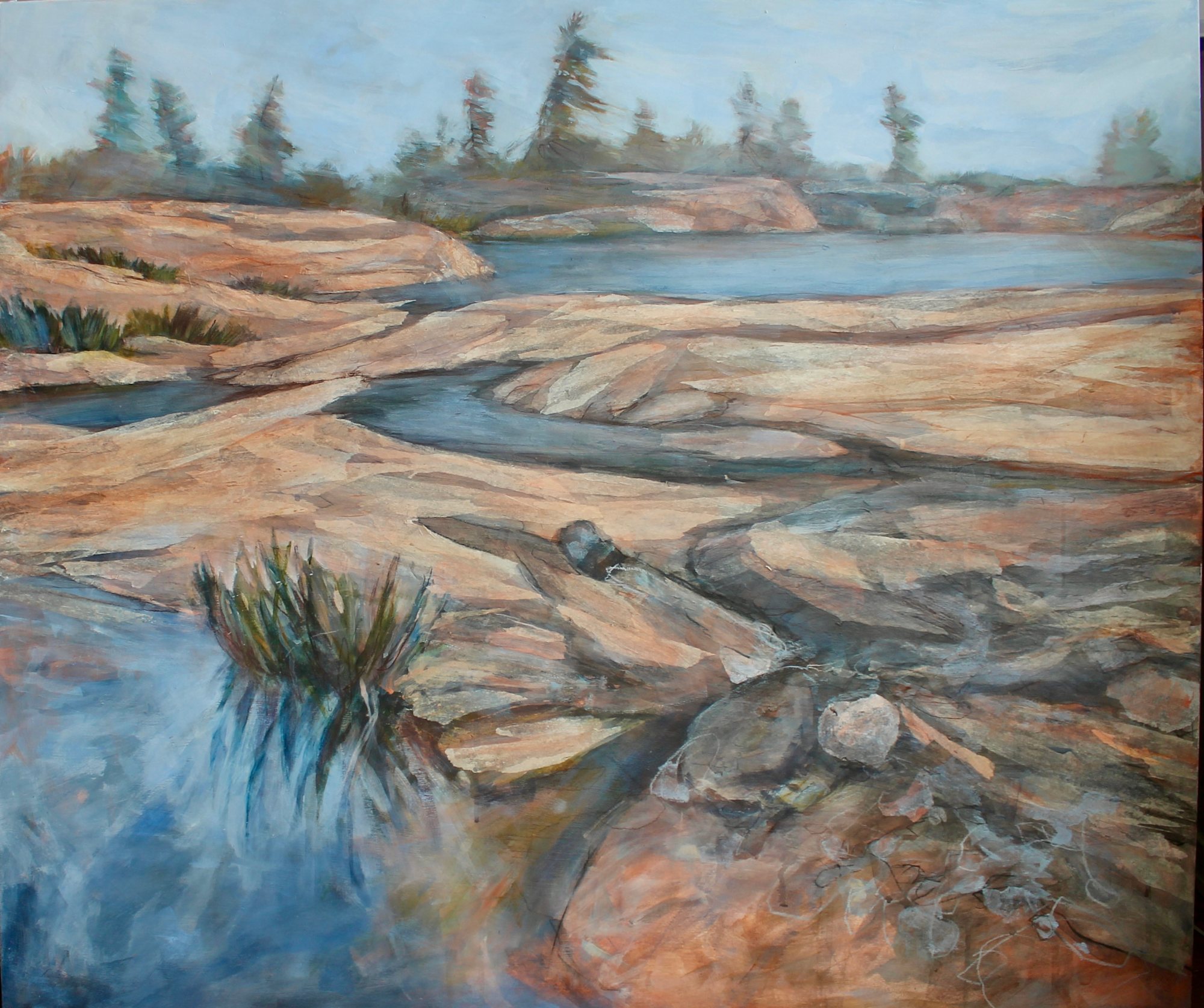 Based on imagery of the battered and weathered rocks cape of northern Georgian bay, Chikanishing explores themes of resilience and hope. This solo show will be held from June 18-29th at Leslie Grove gallery in Toronto