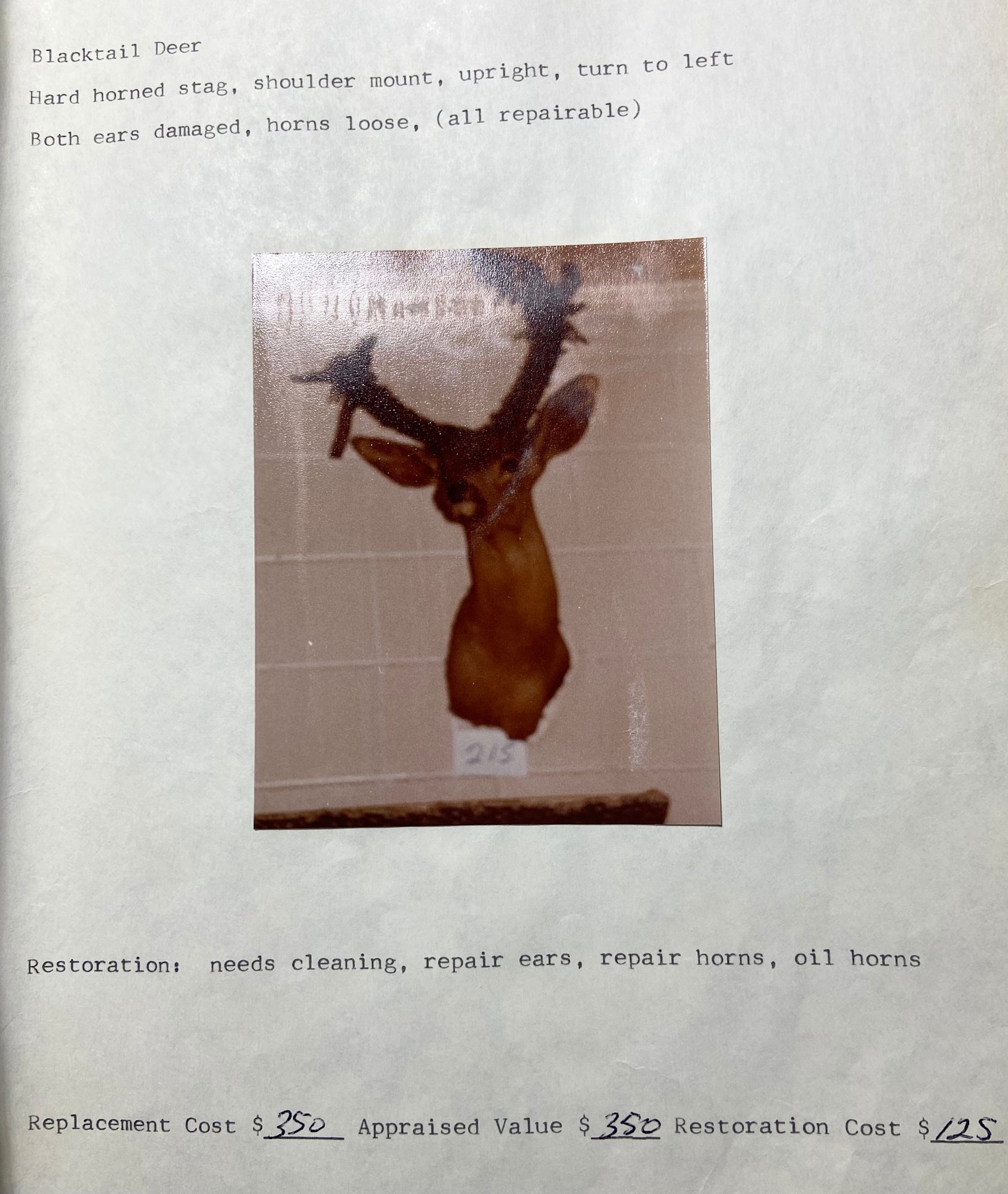 Each mount is named, as well as numbered for easy identification. Condition notes are available with every photo, as well as a 1983 appraisal by master taxidermist, Jack Perry.