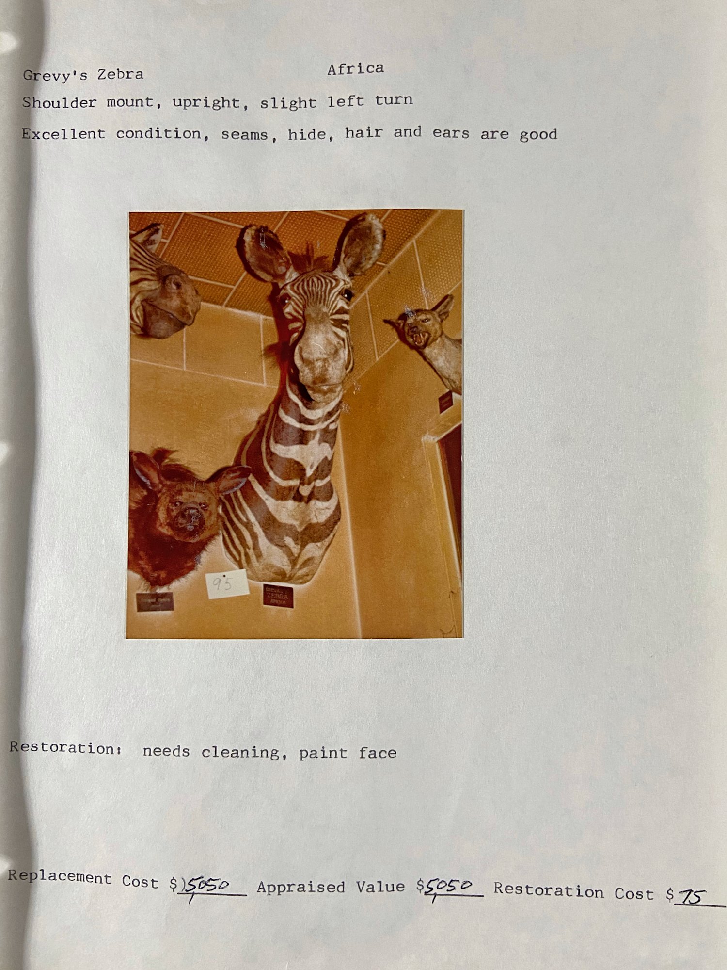 Each mount is named, as well as numbered for easy identification. Condition notes are available with every photo, as well as a 1983 appraisal by master taxidermist, Jack Perry.