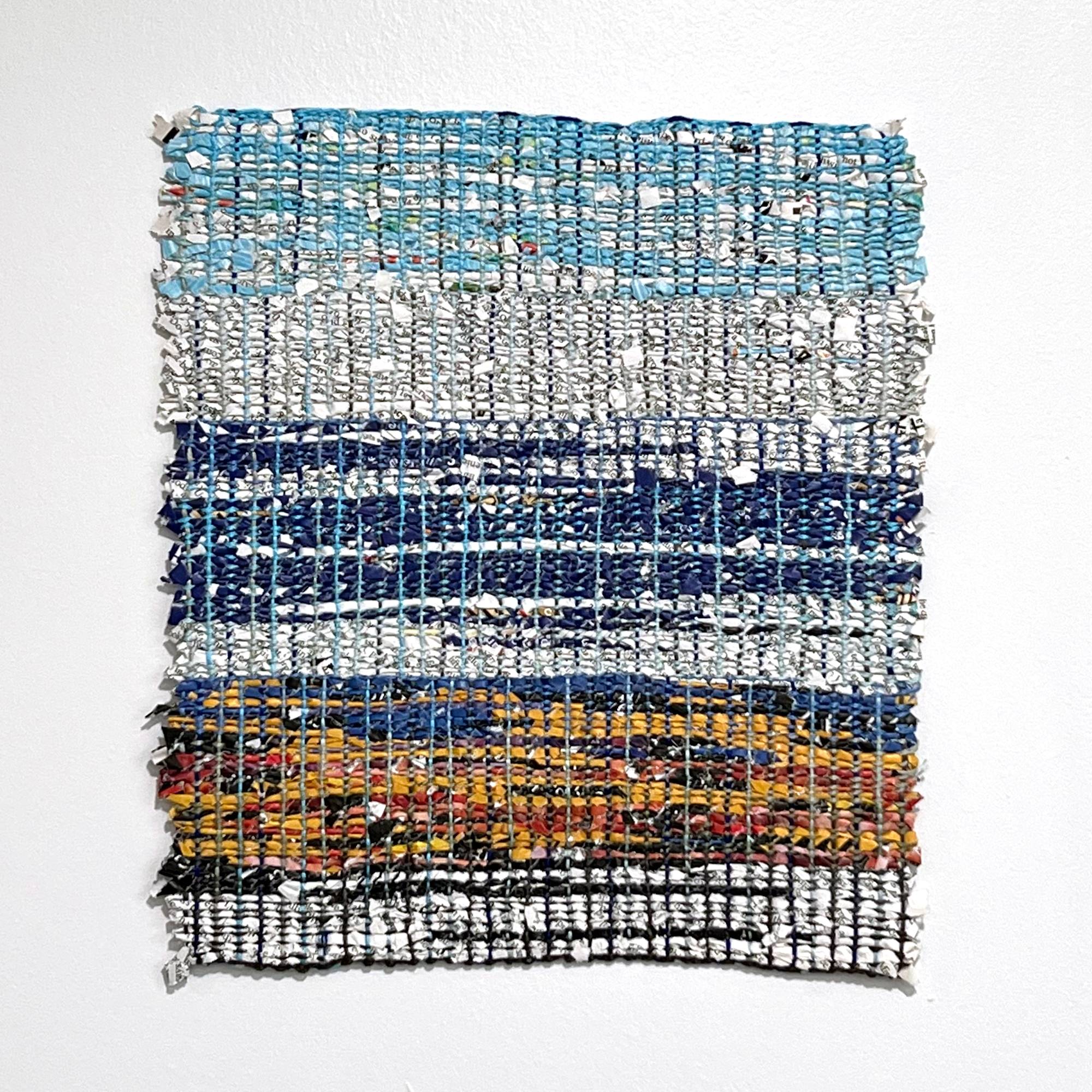 - Shredded, spun, woven New York Times Magazine from Aug. 20, 2023: “They Lurk Inside Our Everyday Stuff. What Are ‘Forever Chemicals’ Doing to Us?,” embroidery thread, fragments of text saved from the cover article
