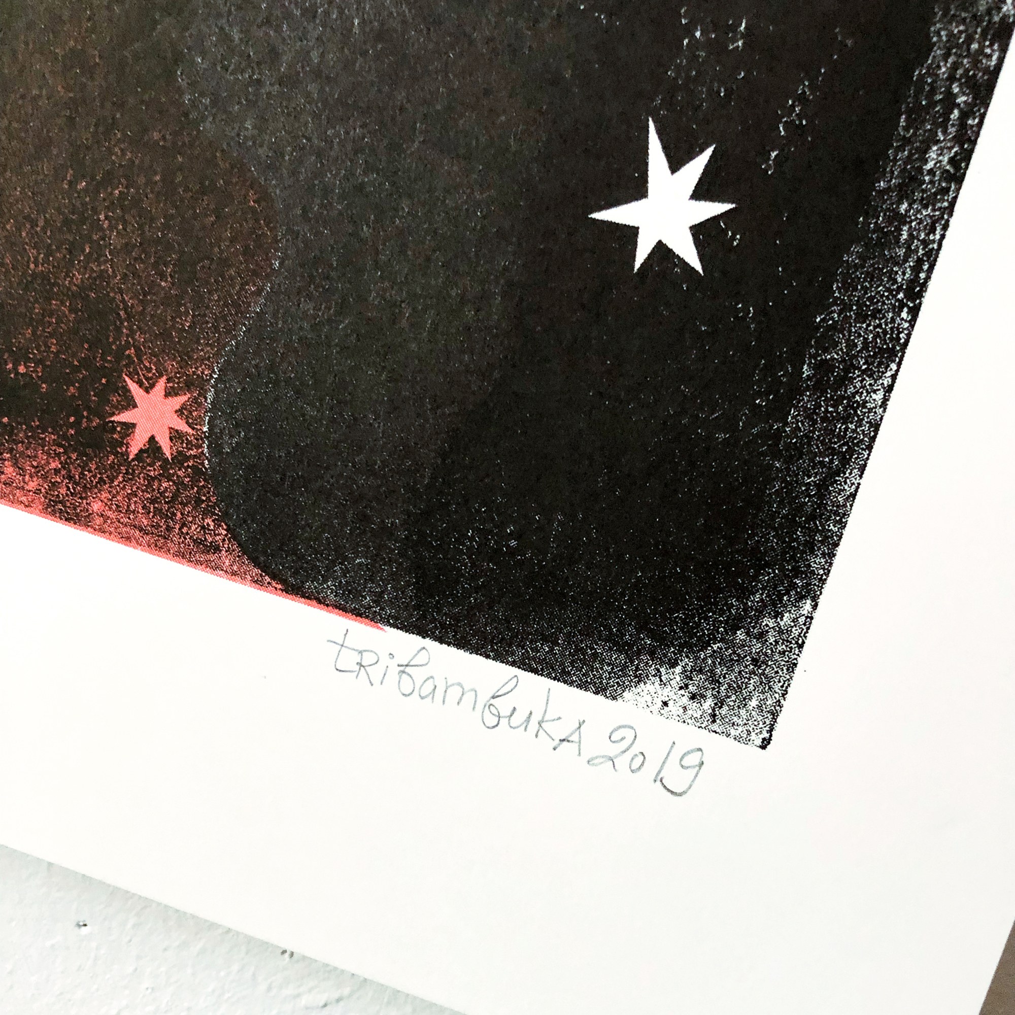 This print is a part of series ‘I Am Home’, an exhibition that presents a selection of drawings, limited edition prints and mixed media sketchbooks that were created by invitation of a Portuguese gallery Atelier 3 I 3. These works are based on the themes of ‘Home’ and ‘Identity’ as well as the intersection and crossover between them.