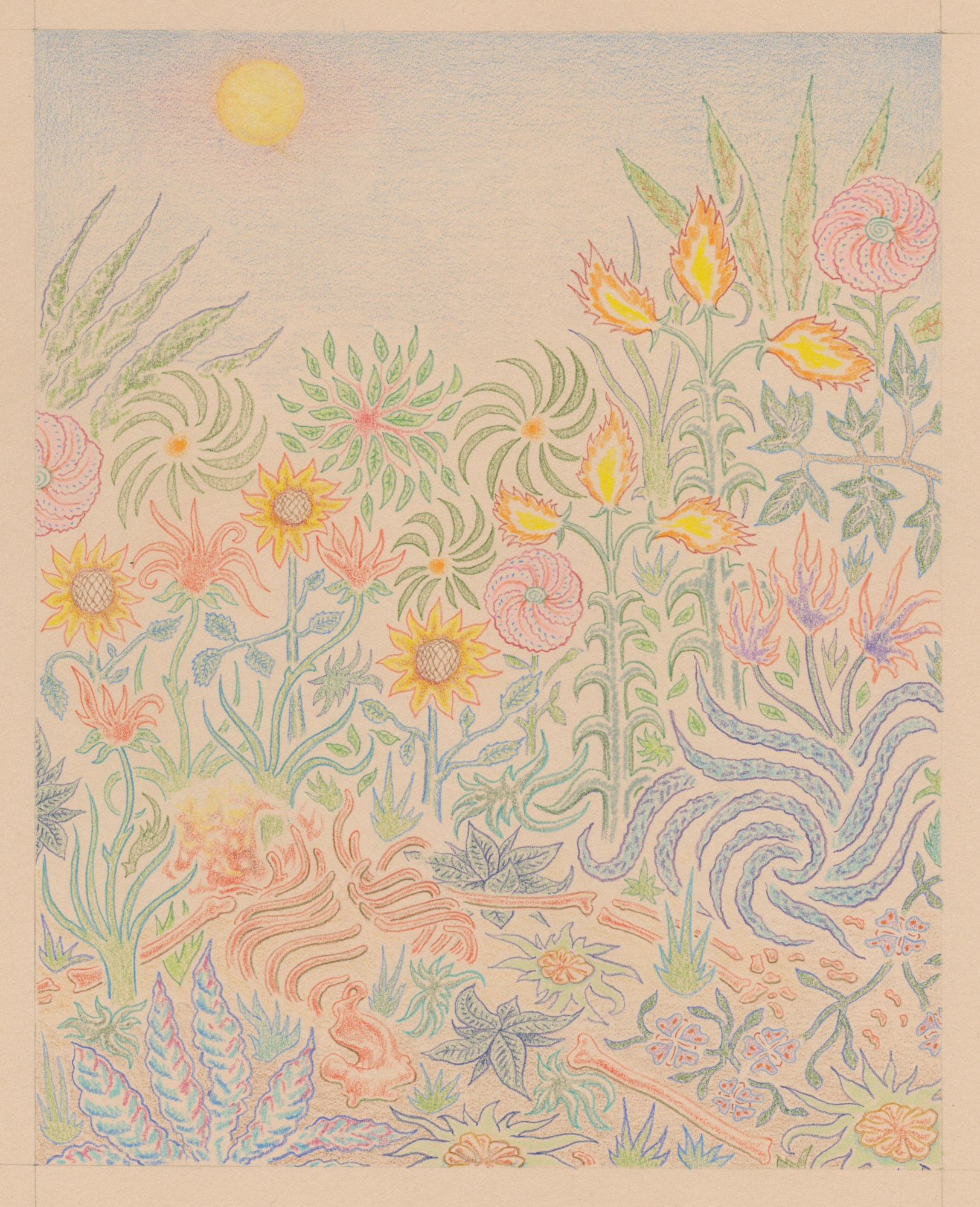 I use the structures of role-play-gaming, Architectural Digest spreads, and religious rituals to create allegorical drawings. Leveling up, fantastical landscape, quest items, mythical beasts, and battles are used to mirror real life scenarios where the individual looking for meaning and purpose is manipulated, controlled, or squashed by a superior force. I contrast the reward system in gaming that is finely tuned to balance work with pleasure to the reward system of global capitalism that can feel arbitrary and cruel. My drawings are fantasy power simulations.