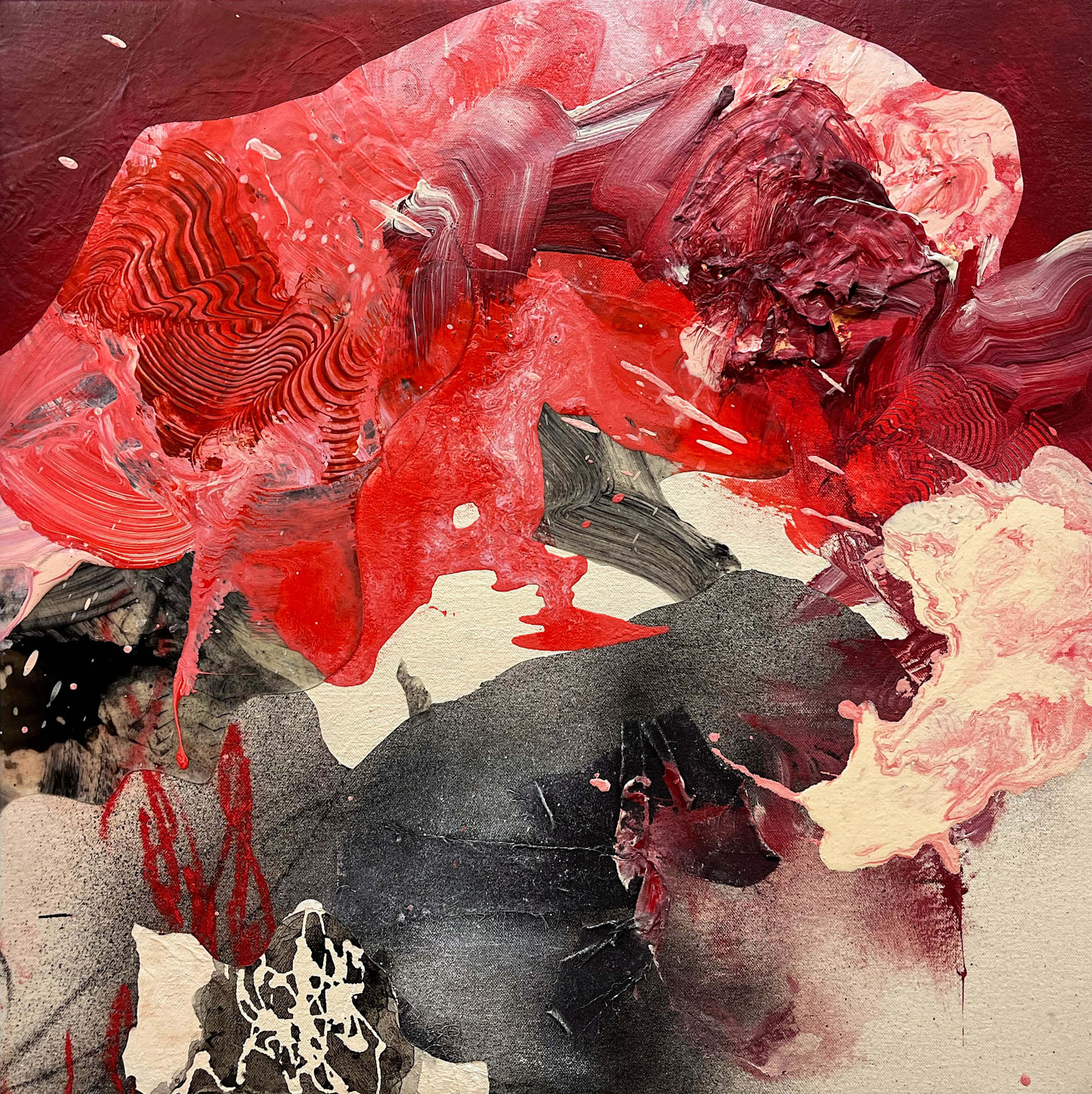 • acrylic, charcoal, pastel, fabric and spray paint on canvas