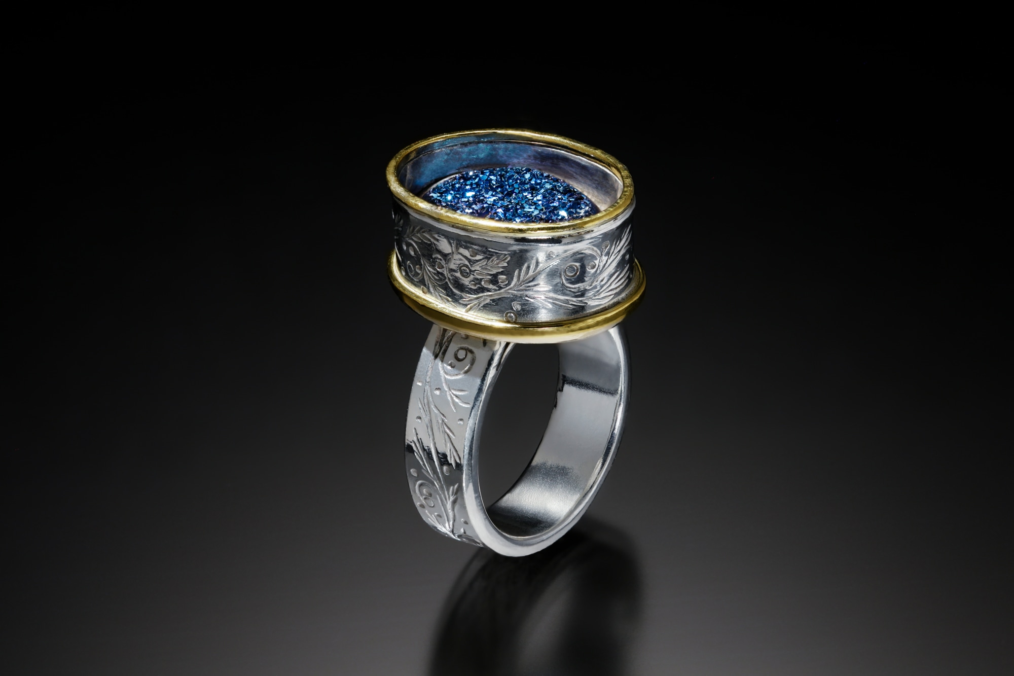 • 18k gold, sterling silver, titanium-bonded chalcedony drusy